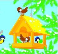 Die Aufgabe besteht darin, die Gartenvögel rund um das Vogelhäuschen